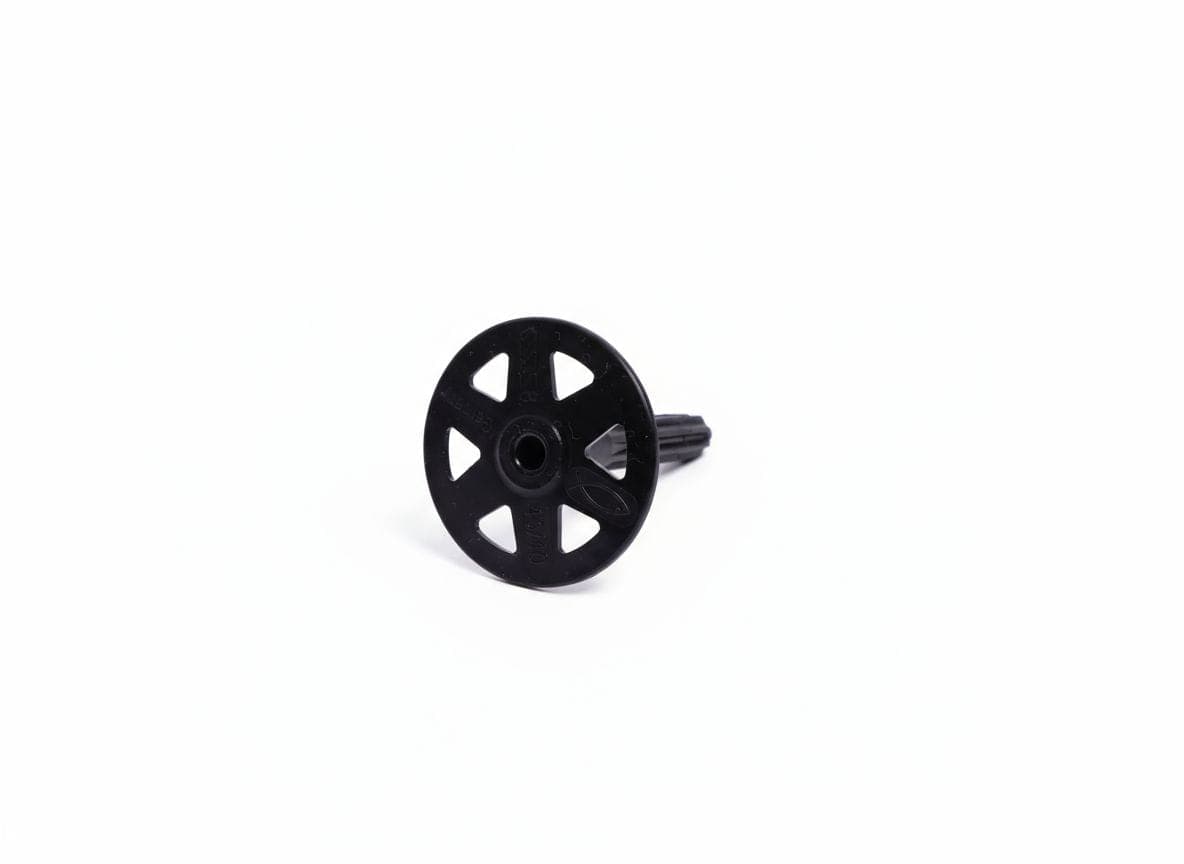 Die Montage erfolgt durch Durchsteckmontage. Bohren Sie zuerst ein 8-mm-Loch in die zugrunde liegende Konstruktion und schlagen Sie den Stopfen anschließend mit einem Hammer in das Bohrloch. Während des Einschlagens schließen sich die Rippen, wodurch der Stopfen fest an der Wand anliegt. Die flexiblen Rippen im Schüsselbereich passen sich dem Isoliermaterial an und sorgen für einen dauerhaften Anpressdruck.